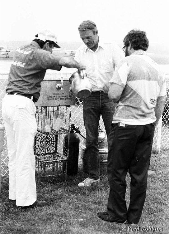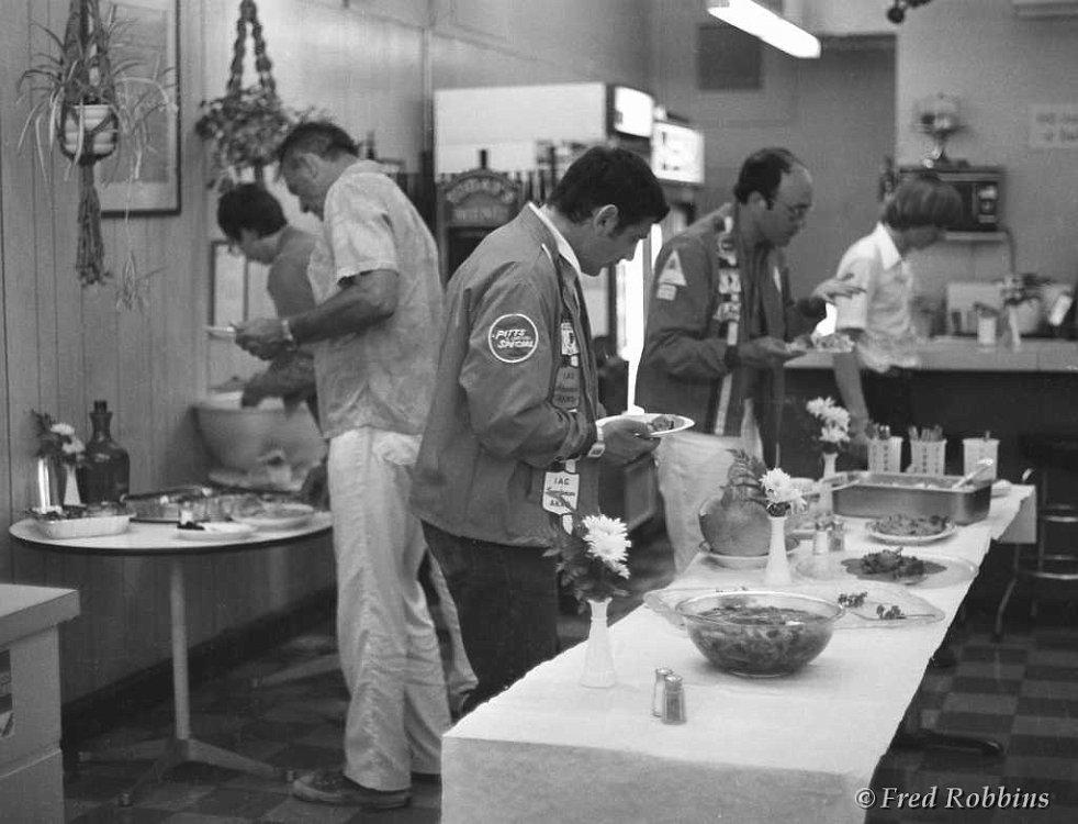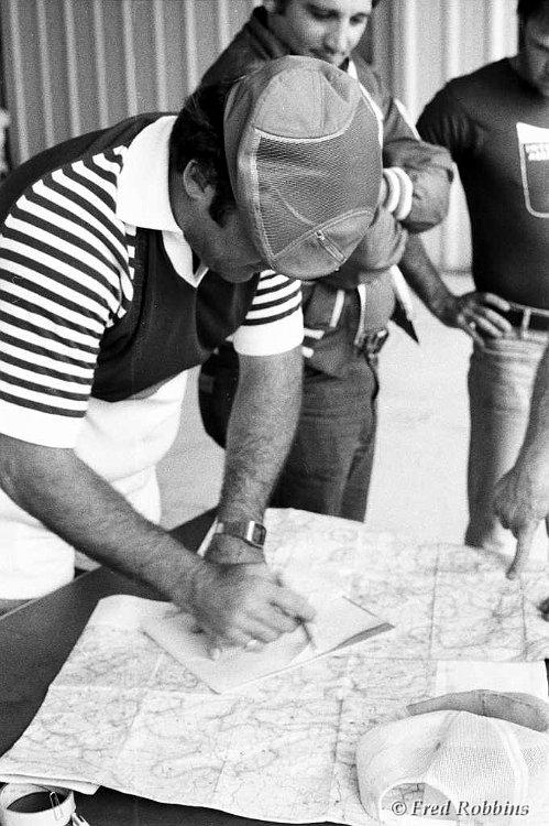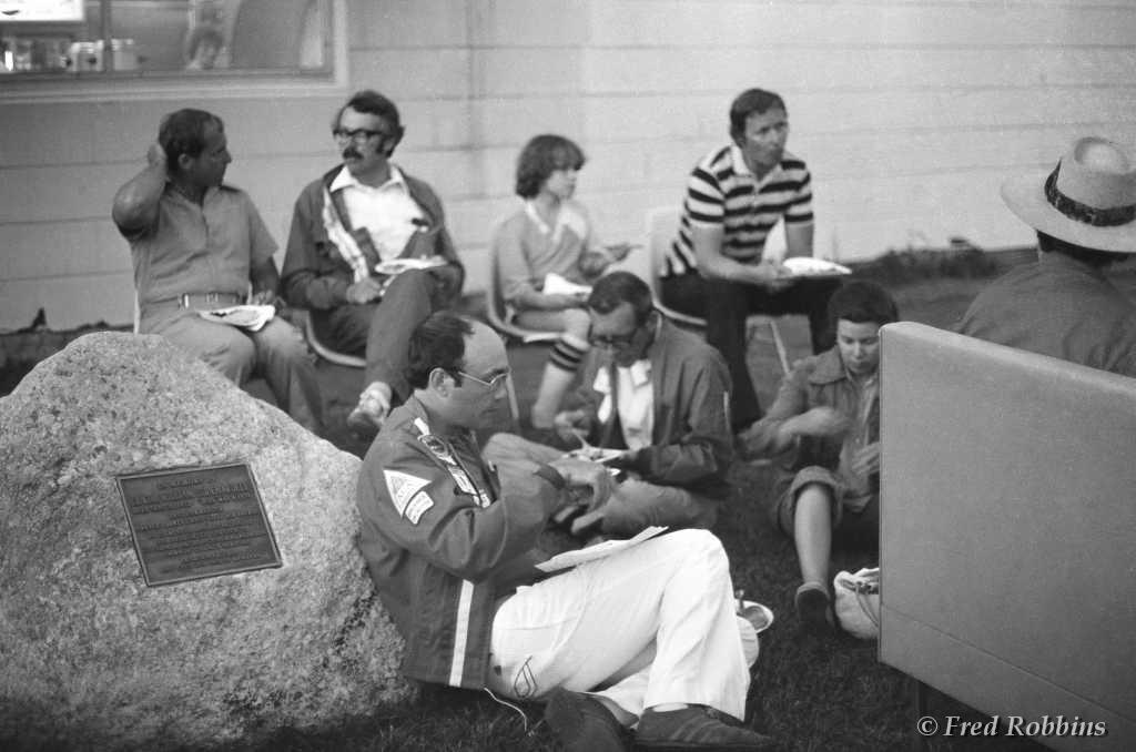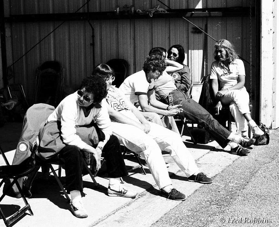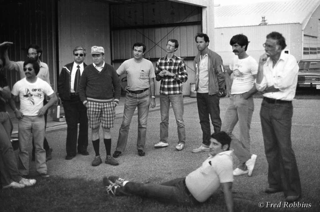 Jeff Roman, Alan Arkawy, Ladislav Bezak, ?, Fred Weaver, Ben Stevens, ?, Ruedi Seiler, ?, Bob Casian (seated), 19??