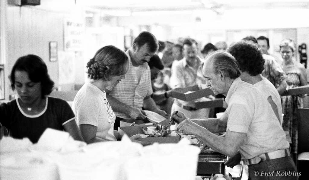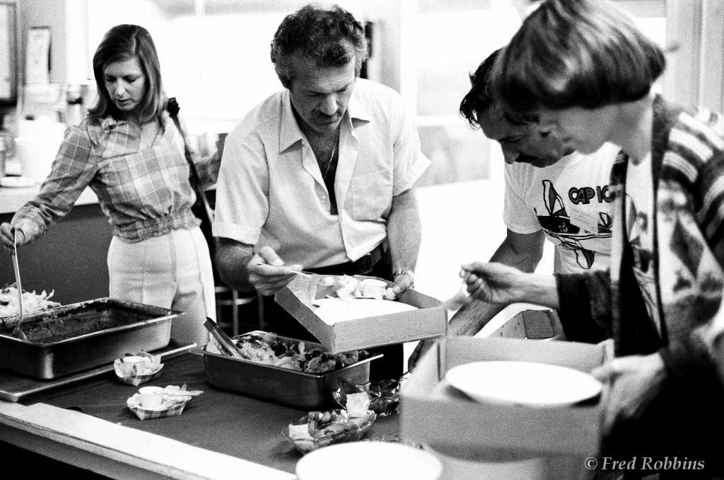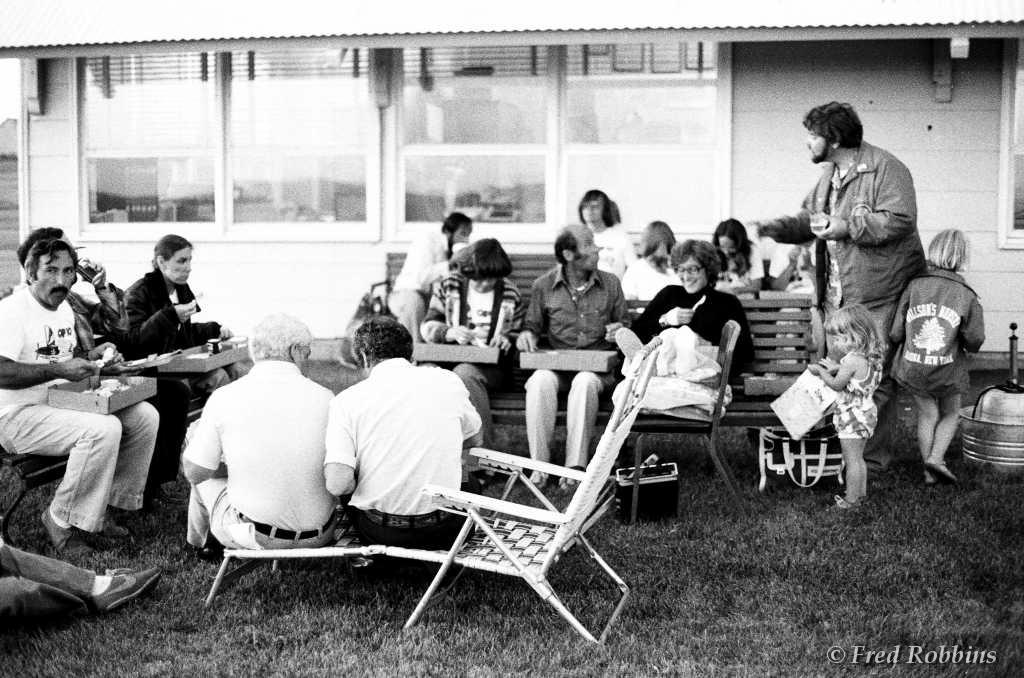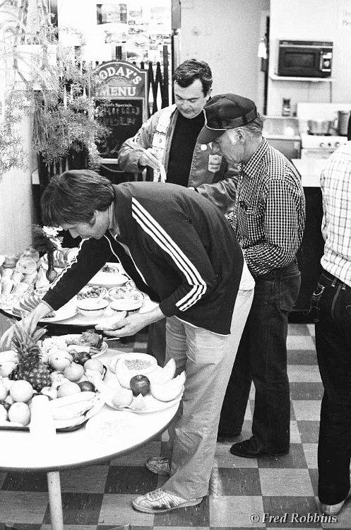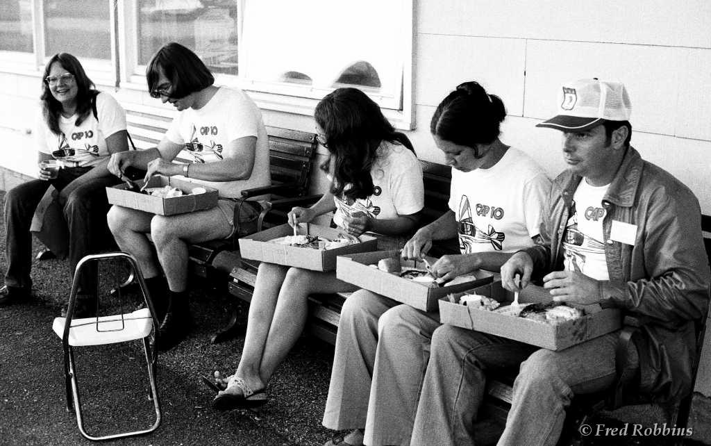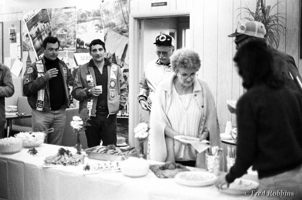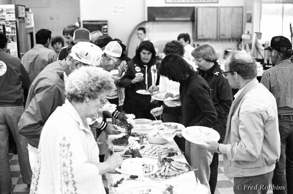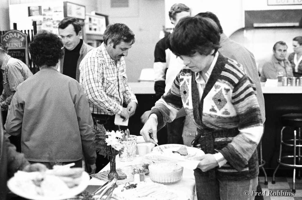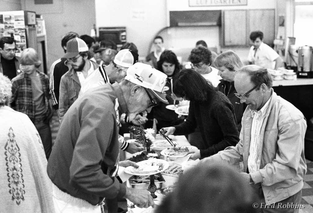 Carl Bury?, Fred Weaver, Marilyn Hubbard, ..., Jodie & Jim Chaudoin (backs to camera), Mary Foster?, Priscilla Beaudrault, Tom Grogan, ..., Fred Willson, 1980
