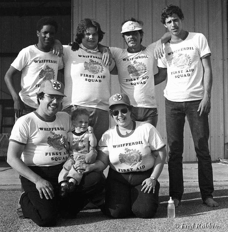 Ossining Volunteer Ambulance Corps: Standing (L to R): John McRae, Billy Chadeayne, Jimmy Reddy, Steve Kress; Kneeling: John, Daniel & Sharon Brana, 1981?
