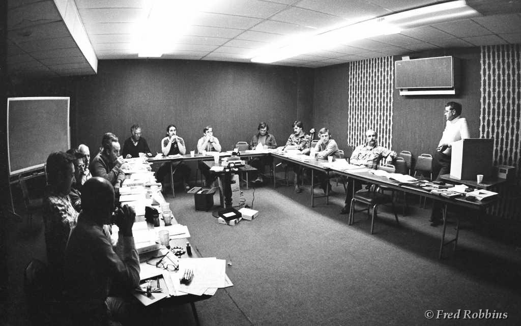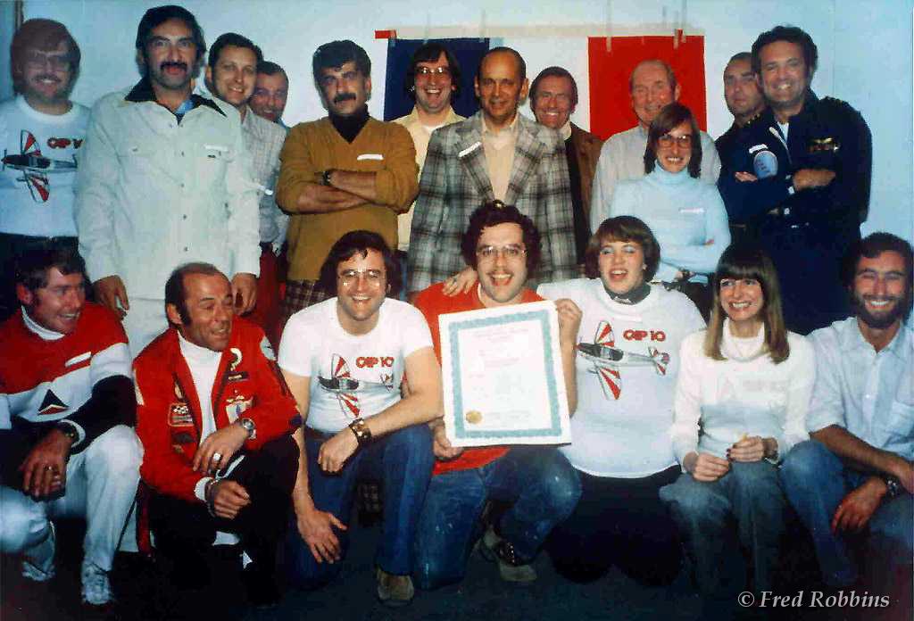CHARTER MEMBERS 1976 - Standing (L to R): Fred Willson, Ron Daniels, Eric Reitberger, [?], Joe Cina, Harold Smith, Bill Ingram, [?], Red Ryan, Montaine Mallet, Tony Perner(?), Sal Manganaro...Front: George Kendall(?), Daniel Héligoin, Fred Robbins, John Brana, Sharon Brana, Ellie Managanaro, Charles Silvan