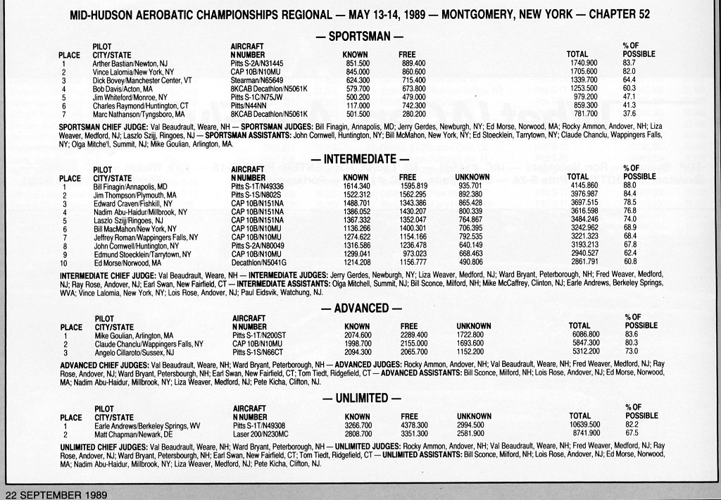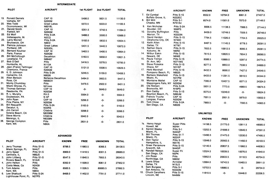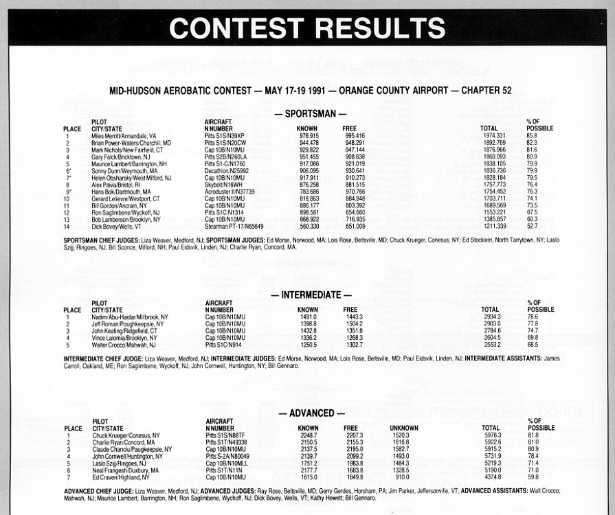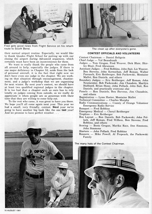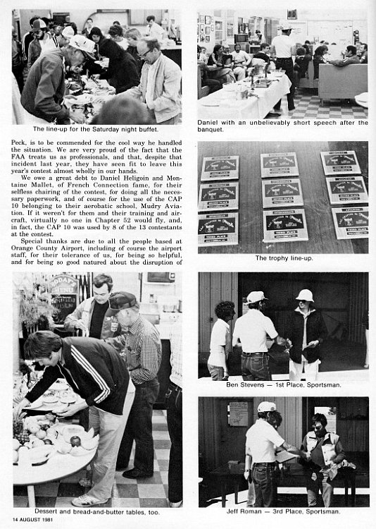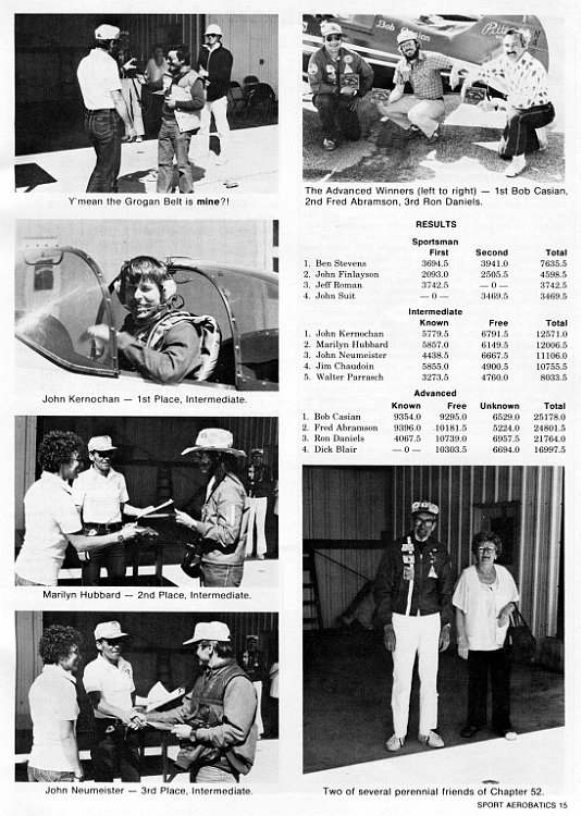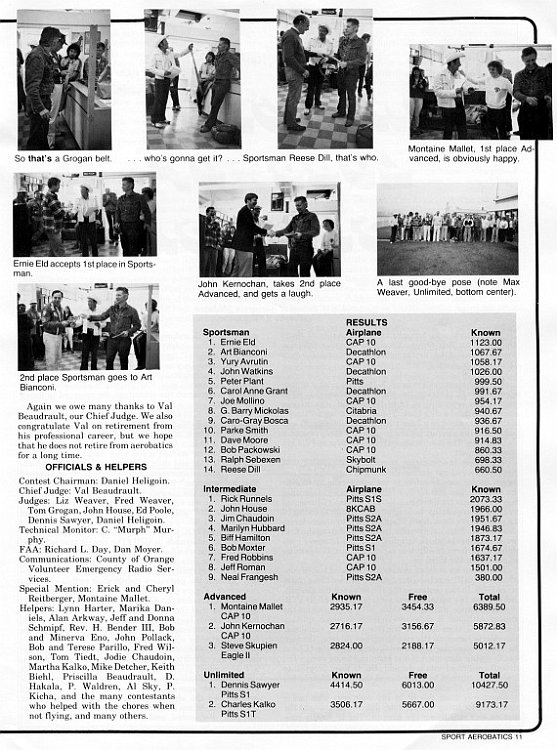 Thanks to Alan Arkawy, Jeff Roman, & Ron Daniels for the use of their collection of SA magazines. In the IAC Chapter 52 Contest slide show (See link below), there are a lot of missing captions, unknown people and dates since all the original prints with captions were sent to IAC for Sport Aerobatics magazine. Some clarification is made in this series of pages. Any feedback would be appreciated.