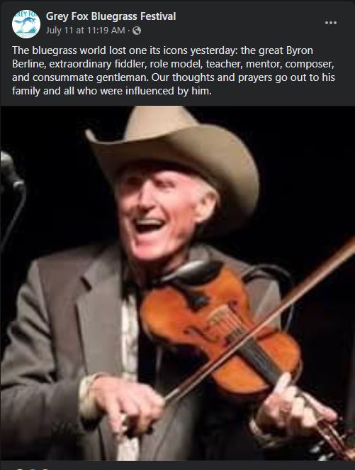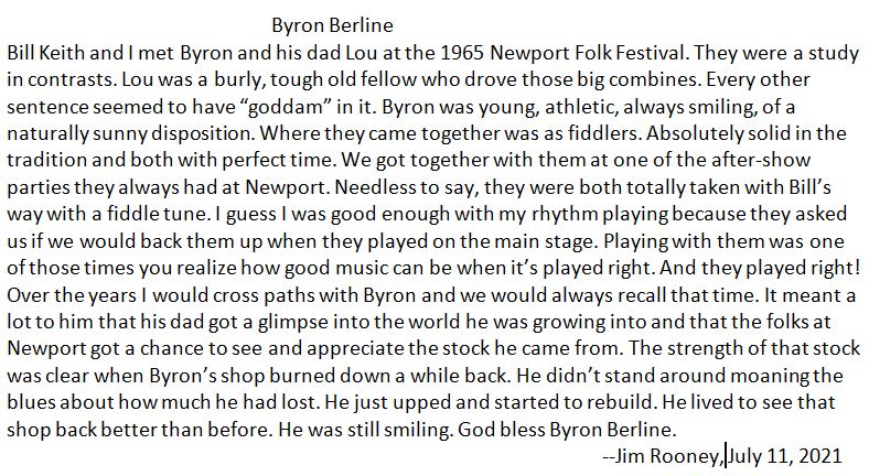 I've rambled enough here. I'll skip the road stories (there are so many) and fast forward through the memories. Byron was everybody's friend and we all have so many good memories of a fine man and a legendary fiddler.