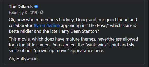 A few years later Byron recruited me to play guitar with him in the L.A. Fiddle band along with Ray Park, Bruce Johnson and Dennis Fetchet, and for countless concerts, festivals, soundtracks, recordings and shows. Byron was the busiest musician I knew and he kept me employed and my rent paid for years We played every club in Southern CA and festivals and shows all over the country.