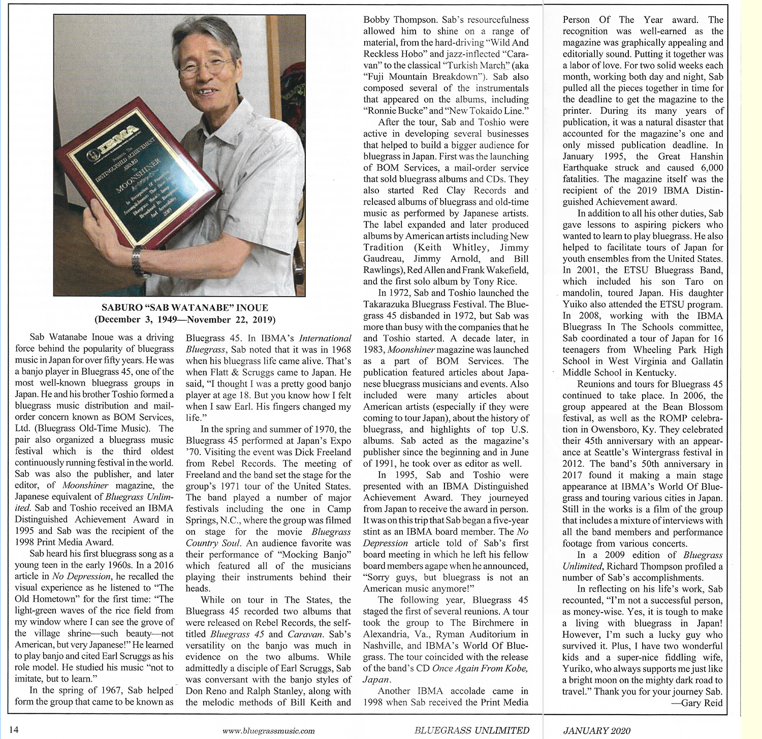 (the only monthly Bluegrass magazine in Japan) for 37 years. It received a Distinguished Achievement Award