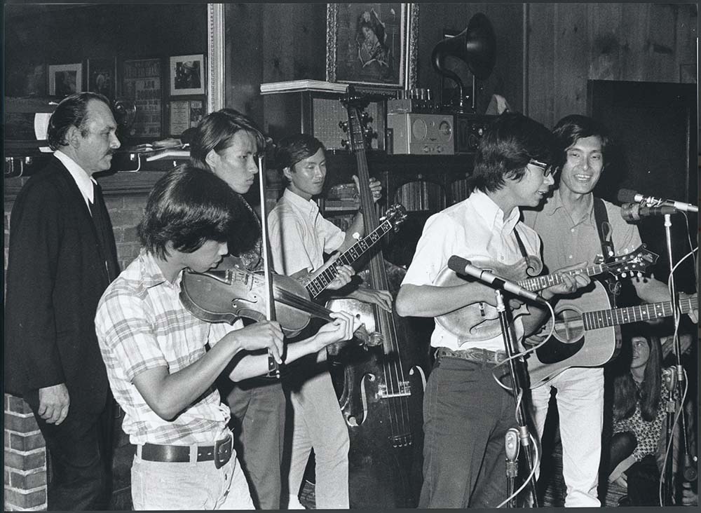 guest fiddler Kunihiko Hayashi, Akira Otsuka (mandolin), Josh Otsuka (guitar),