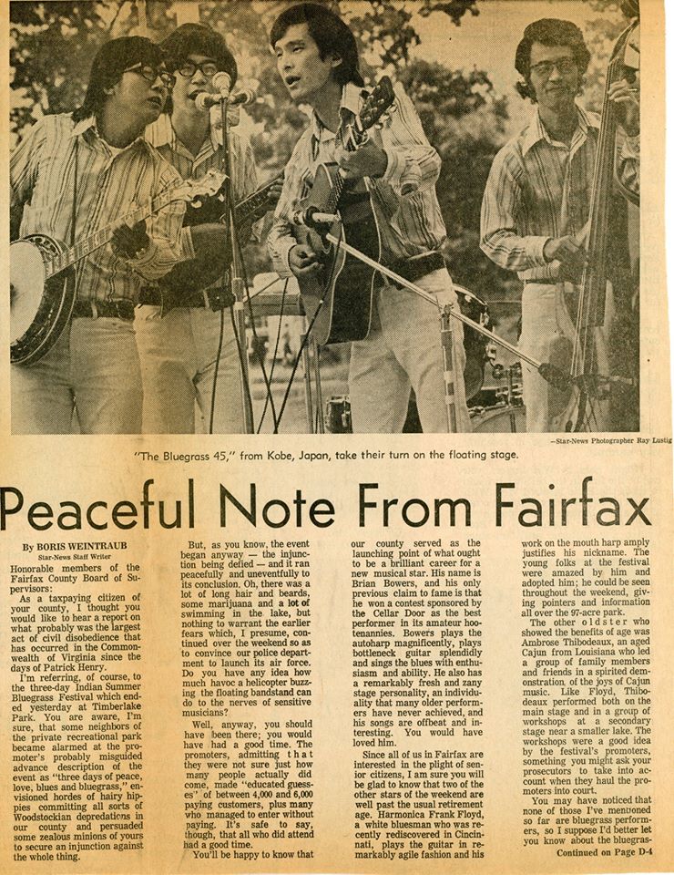 In '71, we played at Beanblossom, Country Gentlemen's in Webster, MA, all three Carlton Haney's festival (Berryville, VA, Gettysburg, PA & Campspring, NC), a contest in Callaway, MD.
