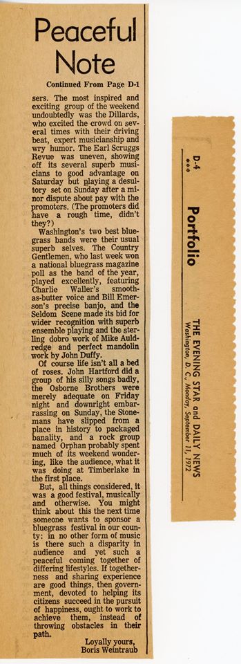 The Evening Star 9/11/1972 - That's the newspaper where Mike Auldridge used to work.