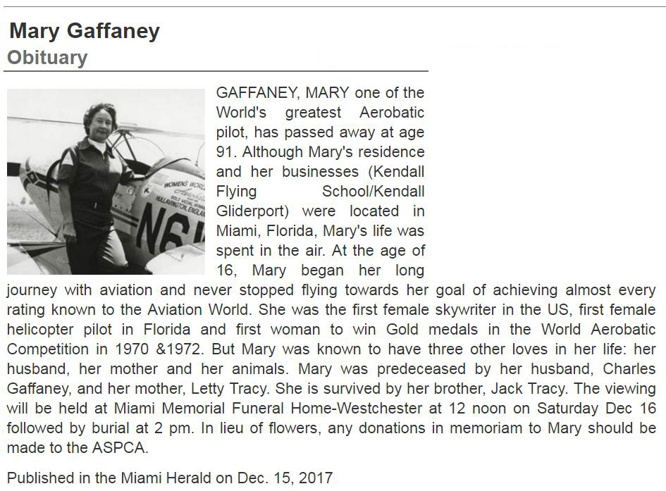 I then realized that the woman in the picture was world aerobatic champion Mary Gaffaney!