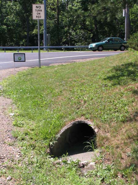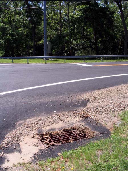 The intake pipe on Clove Branch Road, drain grate beyond