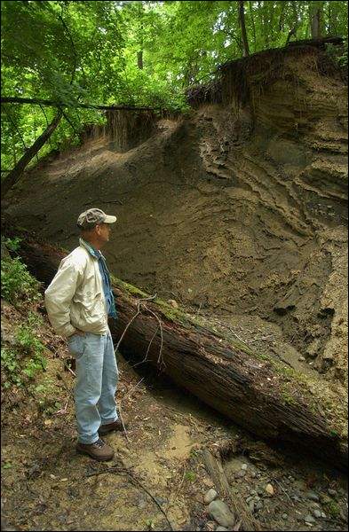 Dick Lahey examines erosion on the Wappinger